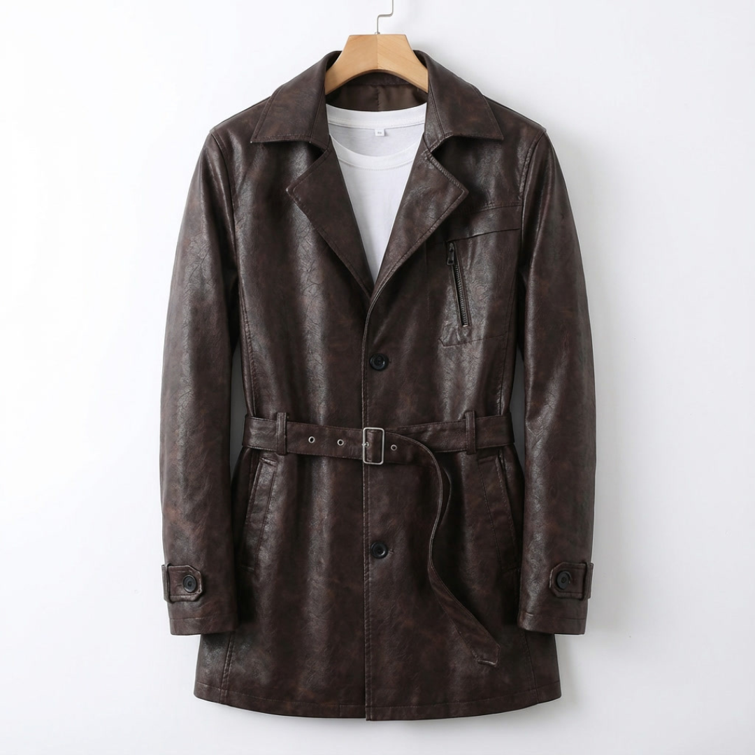 GIANCARLO ADRIANO FAUX LEATHER BELTED JACKET